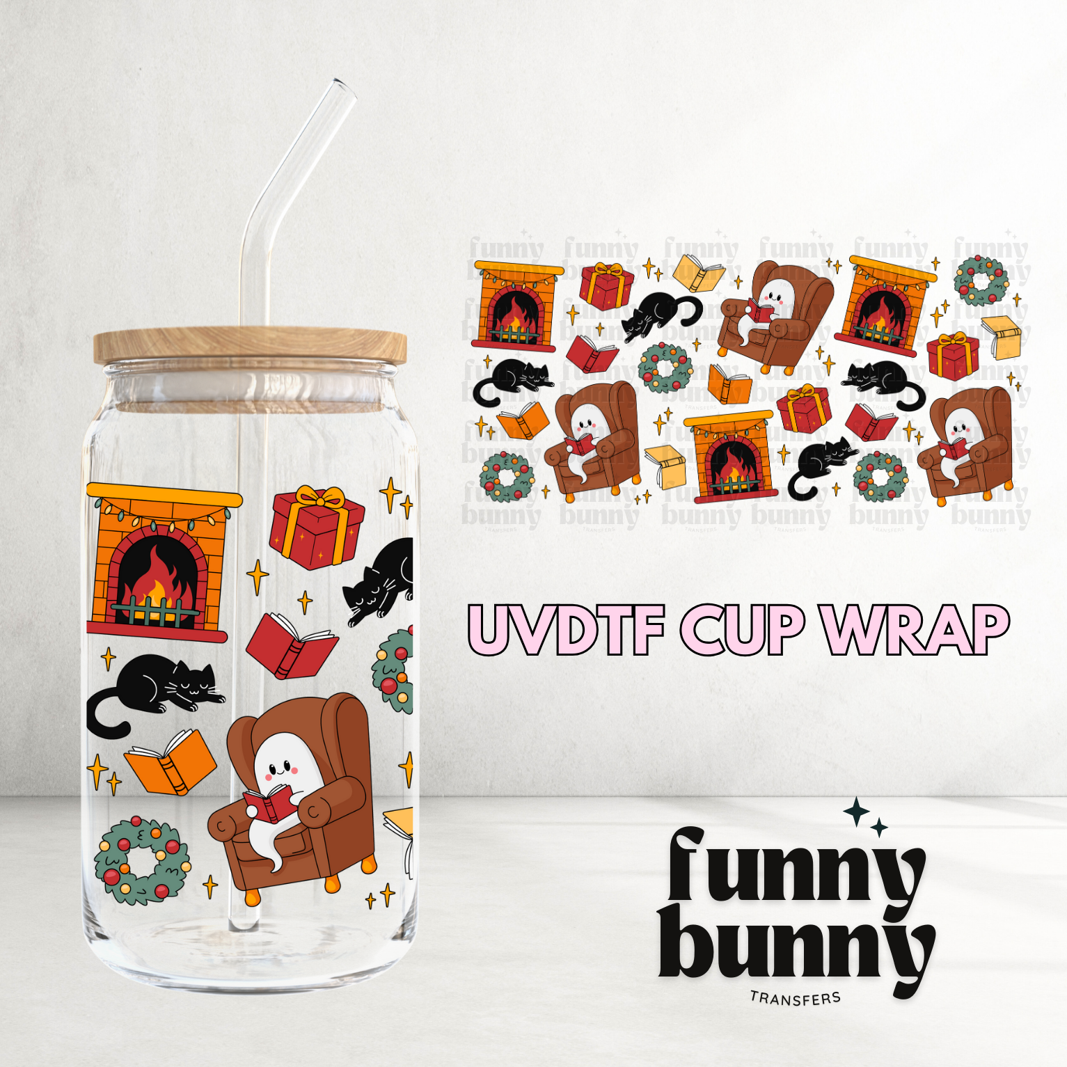 Cozy Xmas Boos - 16oz UVDTF Cup Wrap