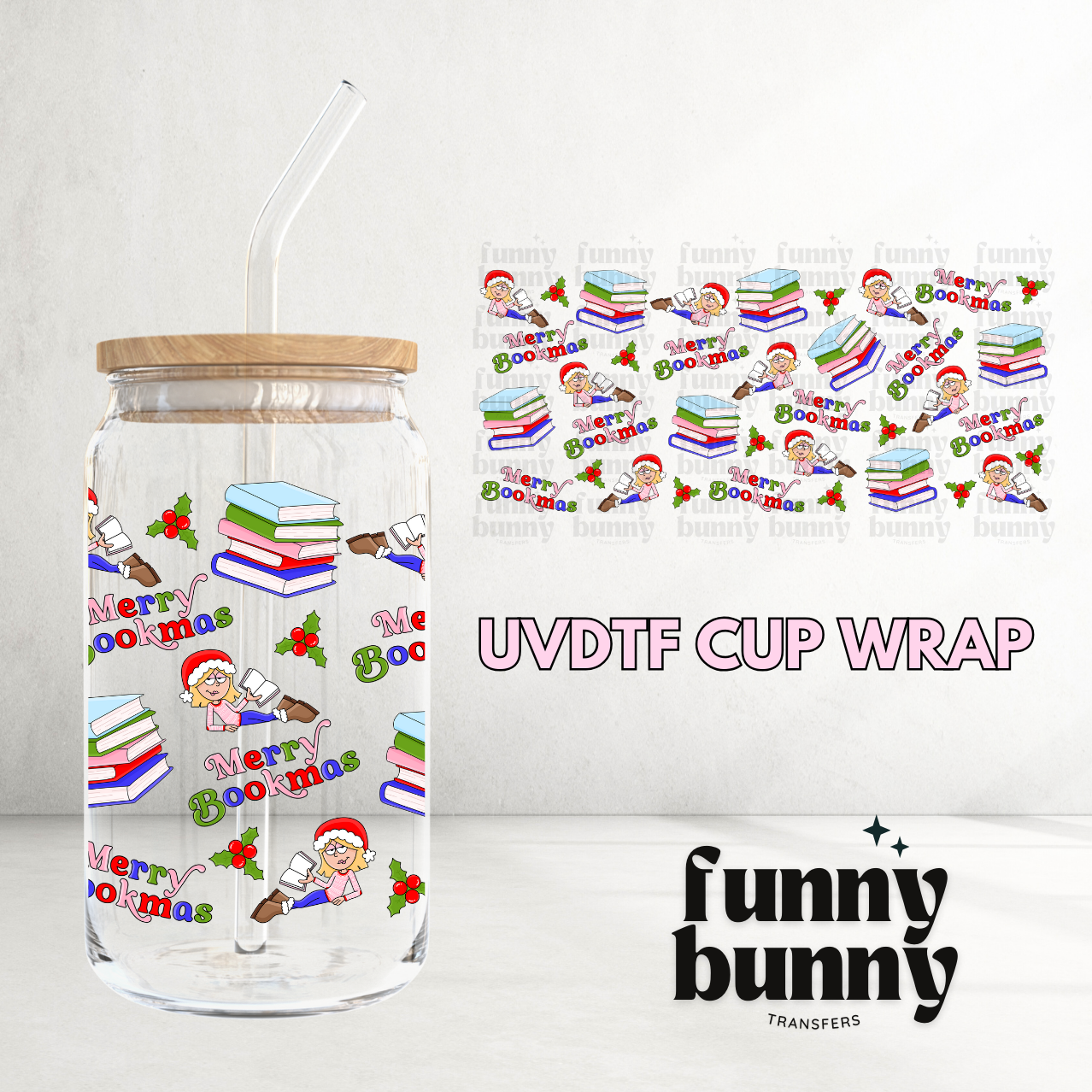 Lizzie Xmas Jolly Books - 16oz UVDTF Cup Wrap