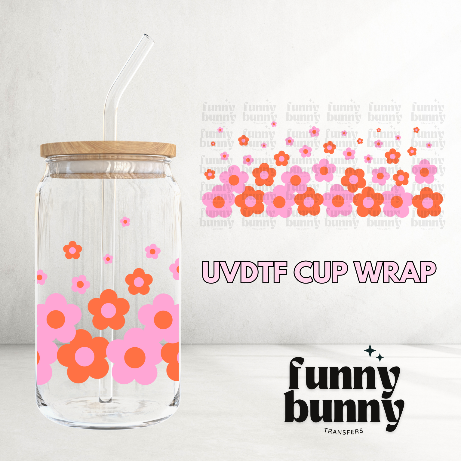 Orange Pink Flowers - 16oz UVDTF Cup Wrap