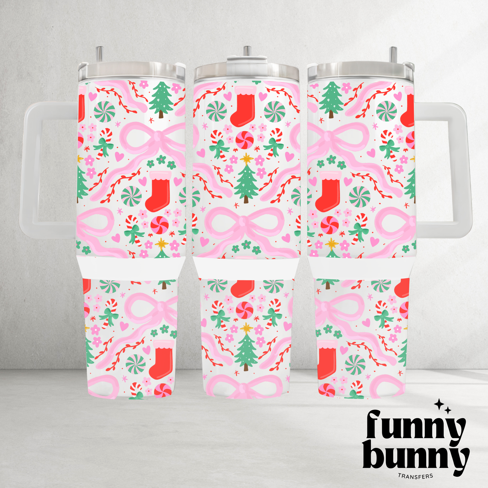 Xmas Flower Bows - 40oz UVDTF Tumbler Wrap